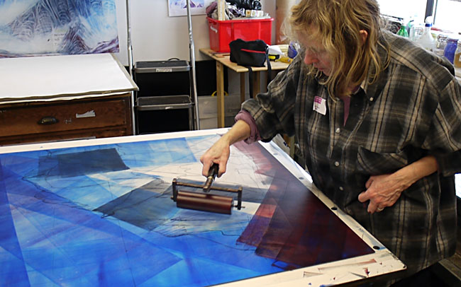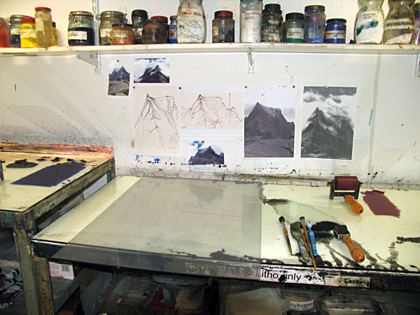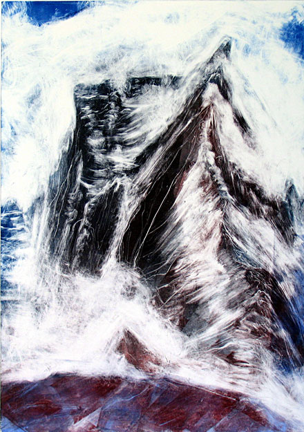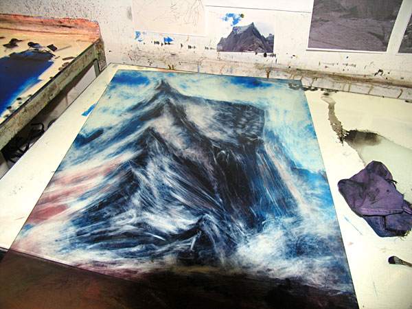 Making monotypes enables me to express the ephemeral, changing qualities I observe - a peak glimpsed through storm clouds, a ridge dematerialising in rising cloud, the hint of a massive form veiled in light and mist.